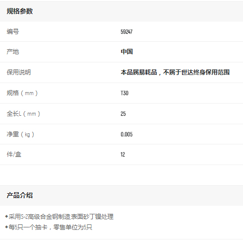 產(chǎn)品名字:世達6.3mm系列25mm長中孔花型旋具頭T30