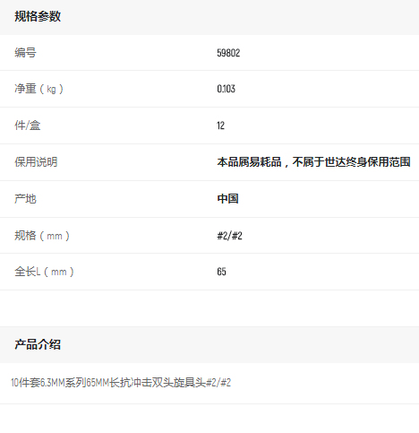 產(chǎn)品名字:世達(dá)10件套6.3MM長抗沖擊雙頭旋具頭#2/#2