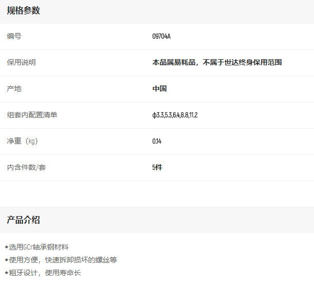 產(chǎn)品名字:世達5件粗牙斷絲取出器組套