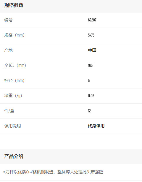 首頁>產(chǎn)品中心>螺絲批>一字螺絲批>世達A系列一字批5x75mm