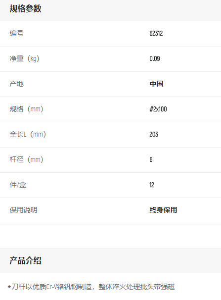首頁>產品中心>螺絲批>十字螺絲批>世達A系列十字批#2*100mm