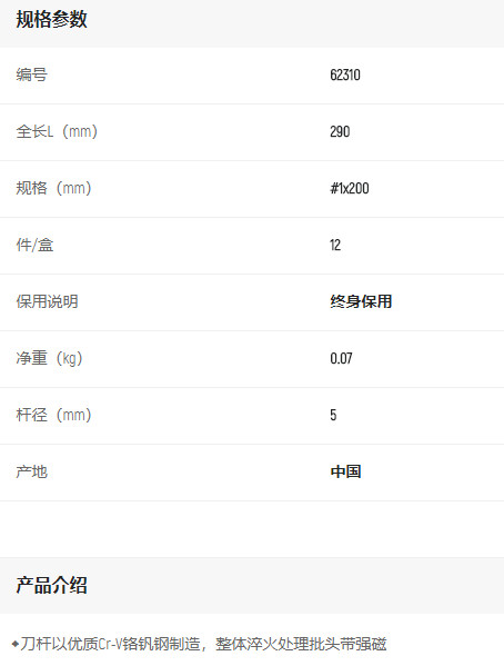 首頁>產(chǎn)品中心>螺絲批>十字螺絲批>世達A系列十字批#1*200mm