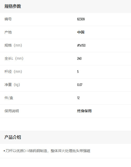 首頁>產(chǎn)品中心>螺絲批>十字螺絲批>世達(dá)A系列十字批#1*150mm