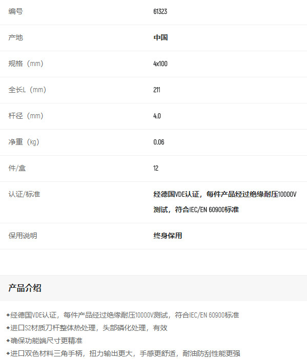 產(chǎn)品名字:世達61323T列雙色一字絕緣螺絲批